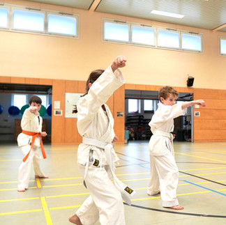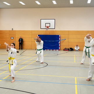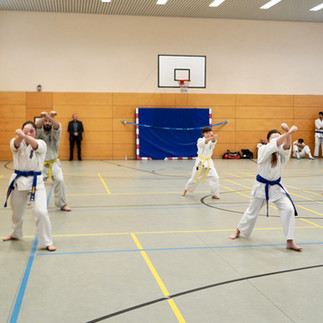Den Auftakt machten drei Kinder aus unserer jüngsten Gruppe, die sich ihrer Orangengurtprüfung stellten. Trotz Nervosität, großer Halle und prüfender Blicke zeigten sie genau das, worauf es im Kyokushin Karate ankommt.